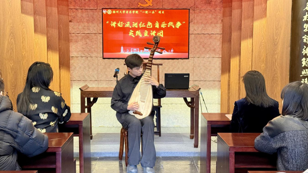 活動中,揚州大學音樂學院本科生黨支部的同學以《講好運河紅色音樂故事》為題開展思政課分享。圍繞運河文化中的紅色基因,結合音樂專業特色,通過經典紅色歌曲賞析、運河紅色故事解讀、音樂文化傳承實踐分享等形式,生動展現了紅色音樂與運河文脈的深厚聯結。整場思政課內容豐富、感染力強,實現了黨性教育與專業交流的有機融合。此次“音樂+黨建”的創新形式獲得了雙方一致認可,后續雙方將進一步探索其應用場景,計劃將該形式植入阮家祠堂家風研學活動中,讓研學參與者在紅色音樂的浸潤與家風文化的熏陶中,深化對黨性修養與文化傳承的理解,推動校企合作在研學領域持續走深走實。