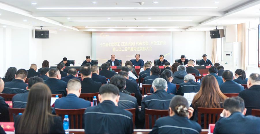 2月11日下午,公司召開第十二屆七次職工代表(工會會員)代表大會暨二〇二五年度先進表彰大會,公司領導班子成員、全體中層干部、職工代表及先進代表共計102人參加會議。