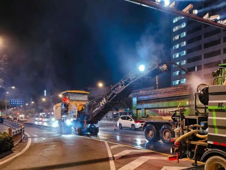 “揚馬”賽道,既是速度的競技場,也是城市形象的展示窗。面對去年夏季高溫導致的車轍,以及前期巡查發現的網裂、局部坑塘等病害,上善公司組織青年技術骨干開展“地毯式”排查,科學制定專項維修方案。自大規模銑刨維修工作啟動以來,青年職工們帶領多支專業施工隊伍,合力攻堅,連續奮戰十余個夜晚,高效完成了文昌東路、萬福西路、文昌中路等核心路段的病害處置,累計維修瀝青路面面積超13000平方米。