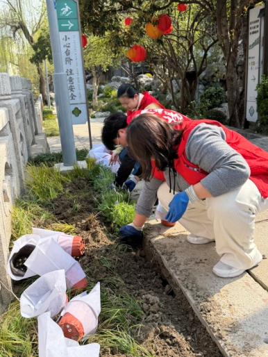 活動現場,志愿服務隊牽頭,街區運營團隊、物業工作人員分工協作、配合默契,在街區沿河步道等區域修剪雜枝、翻松土壤、清除雜草,針對部分空置區域,適量補植花灌木與時令花卉,大家仔細做好挖坑、扶苗、培土、澆水等工序,確保“栽一片、活一片、美一片”。此次志愿行動也帶動了周邊商戶和市民主動參與,大家主動搭把手、出分力,在點滴行動中進一步增強了愛綠、護綠、共建美麗小秦淮的意識。