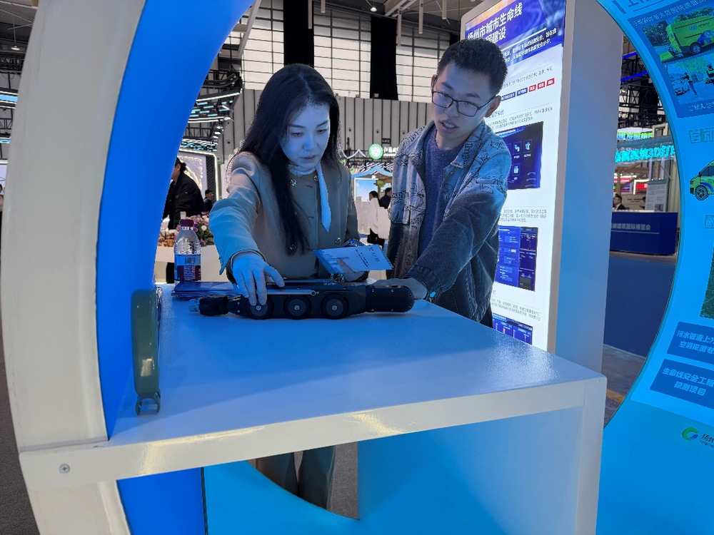 同時,工作人員還展示了公司所具備的從清疏檢測到非開挖修復的全流程能力。在管道檢測方面,微型檢測機器人填補小型管道檢測空白;“鴨嘴獸”動力聲吶檢測機器人可在滿管條件下精準研判管道沉積與變形;全地形機器人融合聲吶與視頻雙重檢測,適應沙地及污泥淤積的環境;探地雷達可通過剖面識別地下空洞,預防路面塌陷。各類機器人以低擾動、低能耗的檢測方式,從源頭助力檢測環節的綠色低碳轉型。在管道修復方面,采用非開挖修復技術相較于傳統開挖,不僅具有施工周期短、揚塵少、對交通影響小的優勢,同時造價成本更低,施工環節低碳節能、綠色環保。在數字化管理方面,公司結合數字化信息平臺與智能化感知設備,實現管網全生命周期的精細化智慧管理,在保障城市污水管道安全運行的同時,持續推動資源節約與環境友好型運維模式落地。